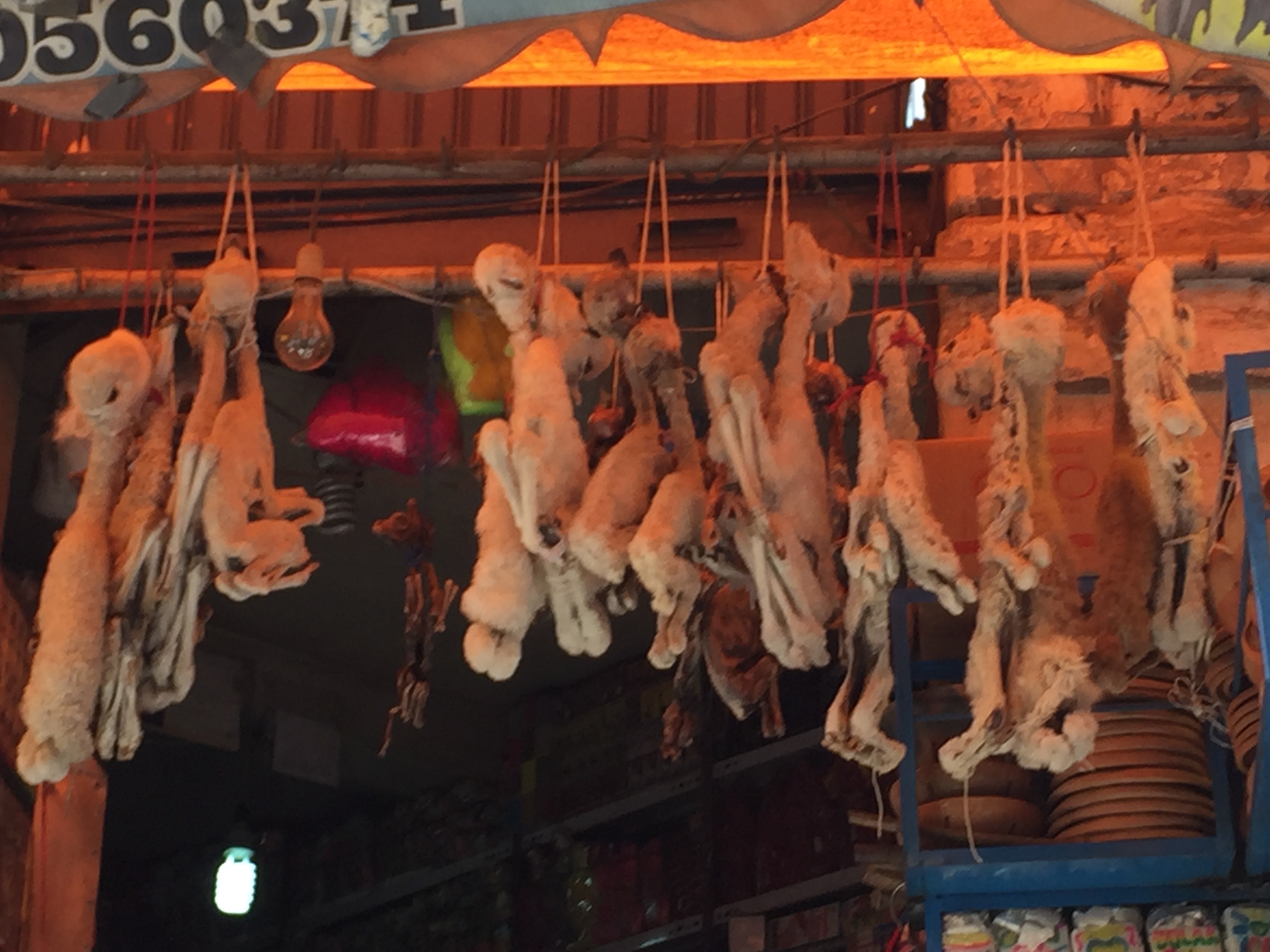 We started our adventure with a Red Cap Walking Tour. It’s advertised as free, but apparently, other tour companies complained, so now the guys feel they need to ask for a donation, so it’s NOT free. Still, it’s an amazing bargain. It was three hours long, and I highly recommend it. Chris and Jorge were funny and informative and easily herded the 30 or so of us around La Paz’s markets and government plazas. And the Witches Market, where we were warned not to take pictures of the women, because they’d put a curse on us. But it’s also a place you can get a dead baby llama for good luck if you’re building a new home. (The llamas, of course, all died of natural causes since Bolivia’s winters are cold. Of course.)